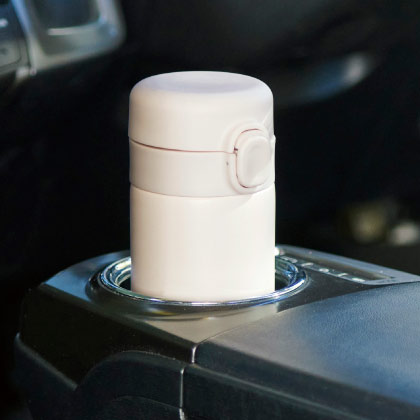 バッグに入れてもかさばらず、車のドリンクホルダーにもぴったり収まるコンパクト設計(65×170mm)です。