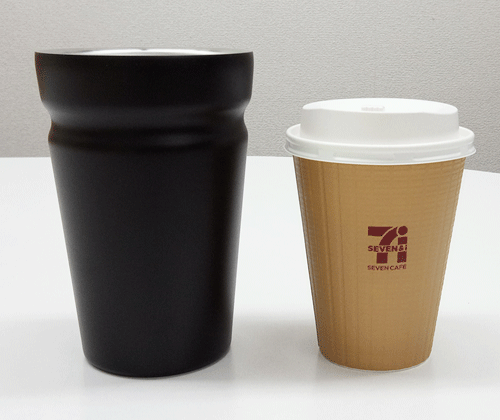 コンビニコーヒーの定番、セブンカフェのLサイズ(ホット)で実際にサイズ感を試してみました。