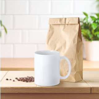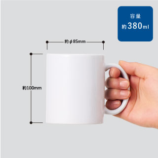 大容量の380ml!定番ストレートタイプのマグカップです。M+サイズより一回り大きなサイズ感になったことでたっぷり飲めて、デザインもより映えるようになりました。シンプルで真っ白なボディは名入れがよく映えるため、オリジナルグッズ製作向けに人気の商品です。