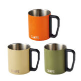 結露などを防ぐステンレス二重構造のマグカップ。外観はマット塗装で落ち着いた色合いで、高級感を演出するレーザー刻印のロゴもポイントです。