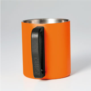 結露などを防ぐステンレス二重構造のマグカップ。外観はマット塗装で落ち着いた色合いで、高級感を演出するレーザー刻印のロゴもポイントです。