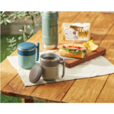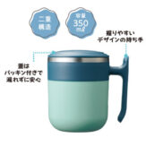 ステンレス二重構造&こぼれにくいフタ付き。他にはないT型グリップ形状が特徴的で、デスクワークやアウトドアなど様々な場面で活躍。