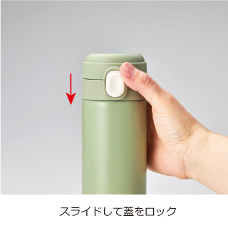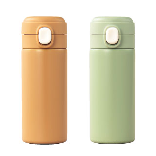 ワンプッシュで蓋が開けられる保冷温ボトル。プッシュボタンに蓋のロック機能が付いています。お子様や女性に人気の飲み切りサイズです。