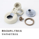 - 内びん⇒ステンレス鋼 胴部⇒ステンレス鋼(アクリル樹脂塗装) フタ・ループ・キャップ本体・飲み口⇒ポリプロピレン フタパッキン・シールパッキン・ボディリング・ソコカバー⇒シリコーンゴム